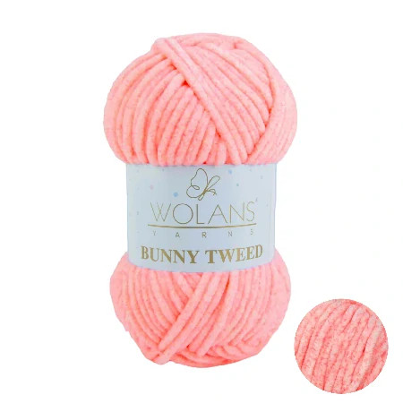 Bunny Tweed patrí medzi ženilkové priadze určené na detské úplety, deky a dokonca aj hračky. Svojou štruktúrou je príjemná na dotyk a je kombinovateľná s priadzou Bunny Baby a Dolphin Baby. Vizuálne je priadza obohatená o pár rúžových vlákien, ktoré na klbku vytvárajú vzhľad malých bodiek.